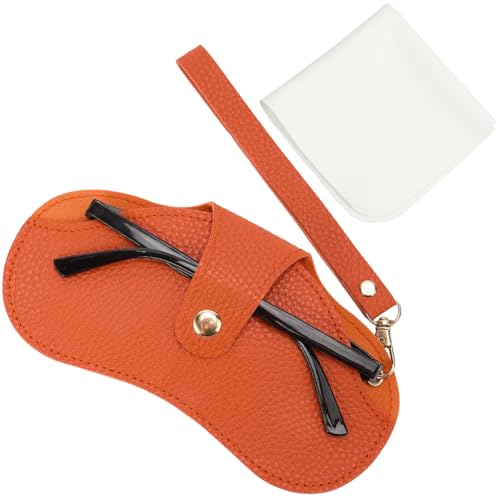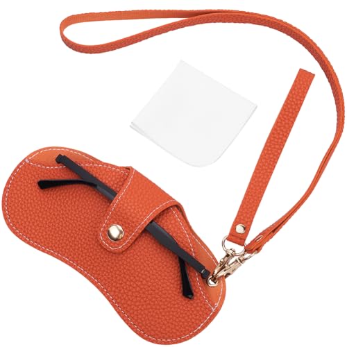 CREATCABIN Étui à Lunettes de Soleil en Cuir Souple Étui à Lunettes Portable Étui à Lunettes en Cuir Étui Fin Organisateur de Protection Léger avec Bouton Dragonne pour Femmes et Hommes Voyage Orange