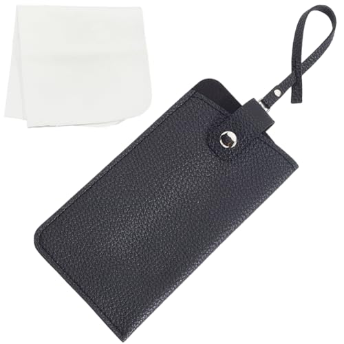 CREATCABIN Étui à Lunettes en Cuir Souple Étui à Lunettes en Cuir PU Étui à Lunettes Sac de Rangement Fin et Léger Lecture avec Dragonne pour Les Voyages en Plein Air Noir