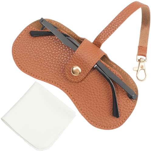 CREATCABIN 1 Ensemble Étui Lunettes Soleil Cuir Souple Étui Lunettes Portable Étui Protection pour Lunettes Support Sac Mince avec Dragonne Clip Ceinture Bande pour Femmes Hommes 18.5x10cm Marron