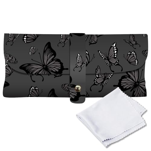 CREATCABIN Étui à Lunettes Soleil Cuir Fin Étui à Lunettes Souple Portable et Compact Pochette avec Boucle à Clous et Chiffon Nettoyage Cadeau pour Femmes Hommes Voyage Vacances 17x9cm Papillon Noir