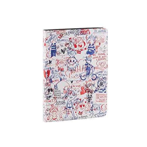 La Volátil Étui pour Tablette Universelle de 9,7" à 10,1" - Type Livre avec Motif griffonnés sur Fond Blanc