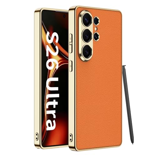 YKKZTHXX Étui Antichoc de Luxe pour Samsung Galaxy S26 Ultra avec Cadre métallique doré Étui pour téléphone en Cuir Haut de Gamme ultrafin, profilé et résistant aux Rayures (Orange)