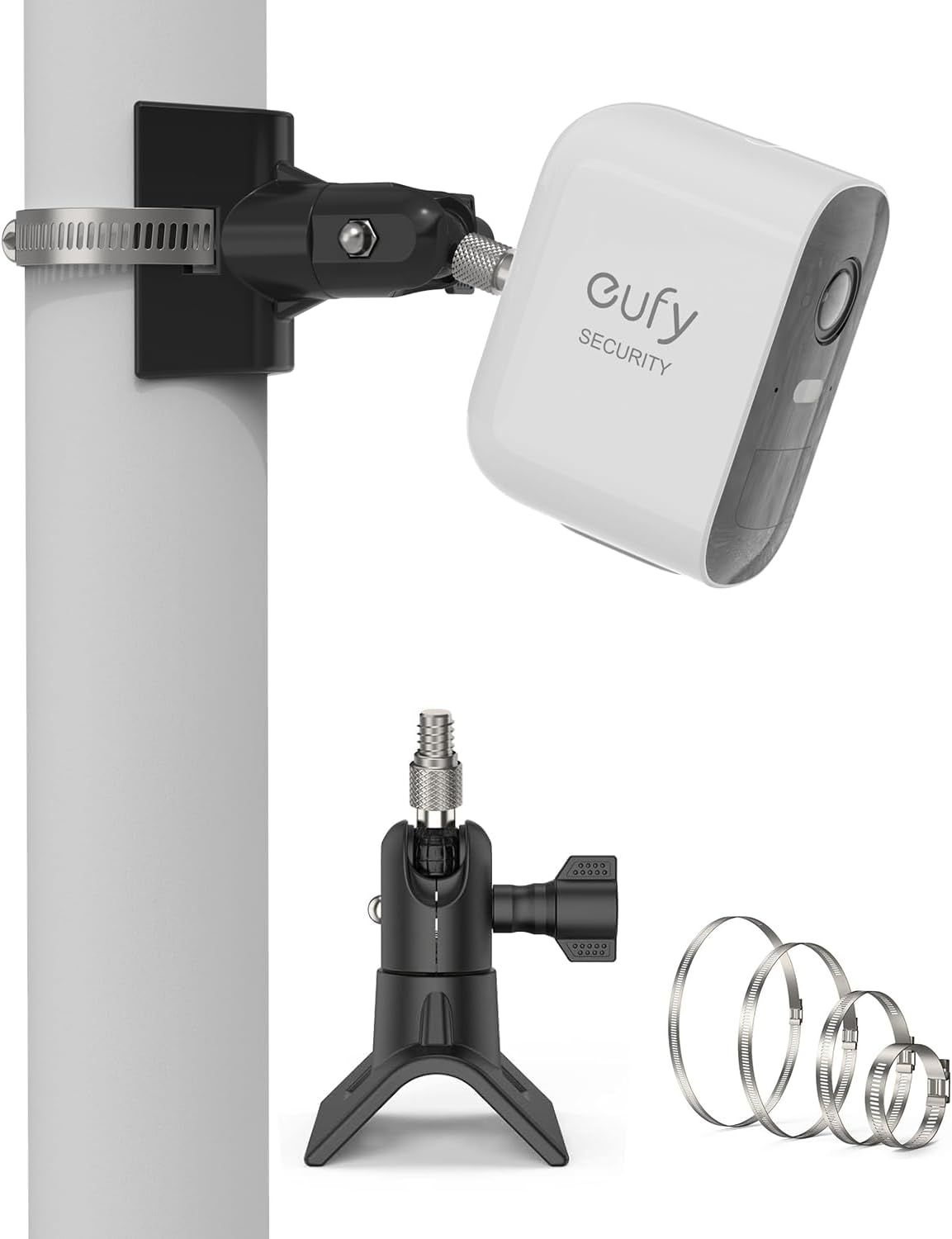 DXiongW Support pour Eufycam 2 2C 2C Pro 3 3C 1 E Arlo Ultra 2 Pro 2 3 4 Reolink Aosu et autres avec Trou de Vis 1/4" Réglable Support avec 4 Boucles pour Caméra Eufy Montage sur Poteau Extérieur Noir