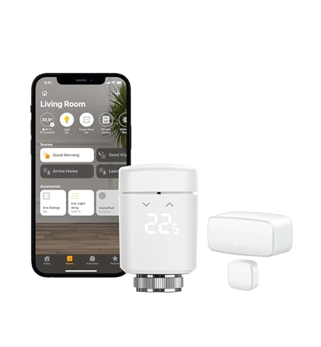 EVE THERMO Lot de 2 vannes de radiateur intelligente - Technologie Apple HomeKit et programmes autonomes Bluetooth Thread