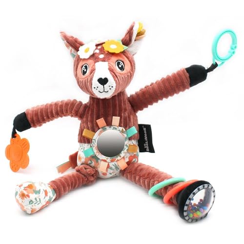 LES DEGLINGOS - Spirale d’activités Melimelos la biche - jouet d’éveil pour bébé avec activités sonores et tactiles - 1 pièce - Terracotta - 40cm déployé