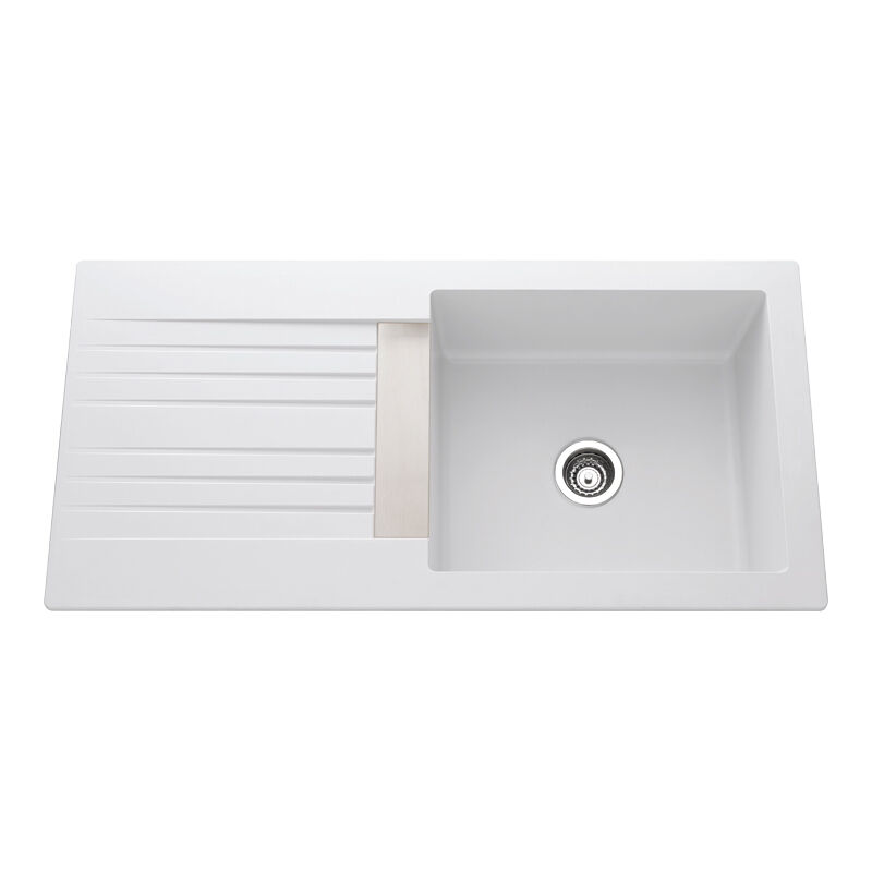 Evier de cuisine à encaster 1 cuve et demi bac en résine minérale Blanc 98 x 50 cm