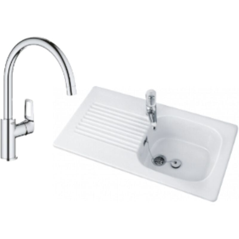 Villeroy&boch - Evier 1 bac villeroy et boch Tudor + mitigeur cuisine grohe Bauloop bec haut