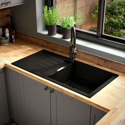 Evier à encastrer en composite quartz noir 1 bac et égouttoir L. 86 x l. 50 x H. 28,2 cm GoodHome Alland