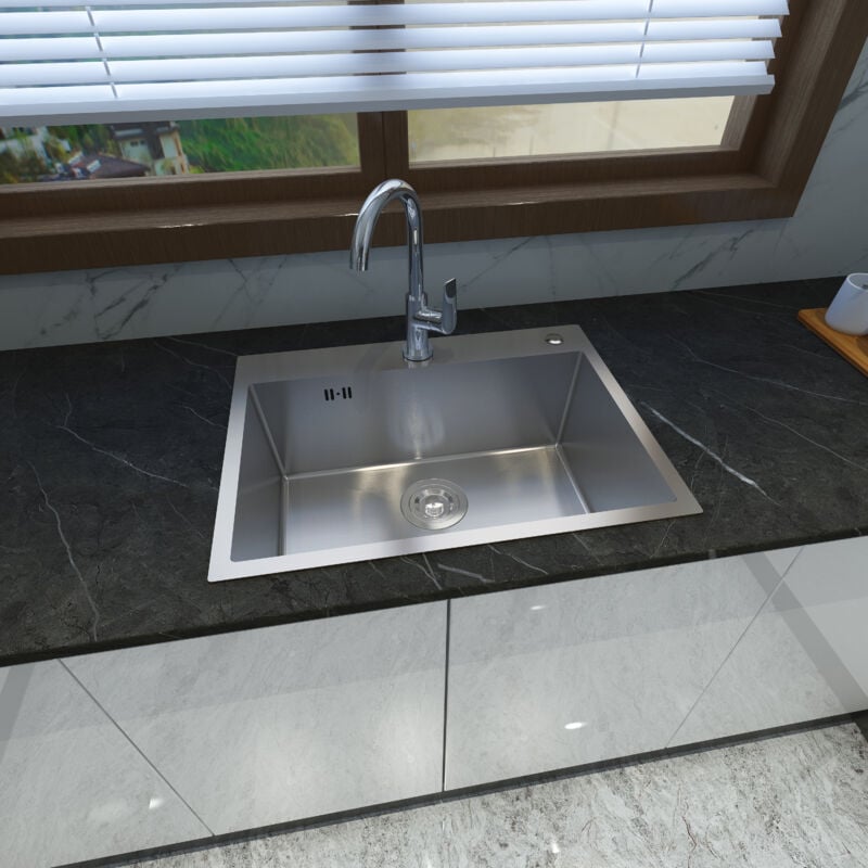 Biubiubath - Evier de cuisine Argent 60x45x20cm 1 Bac en Inox avec montage en surface et montage encastré
