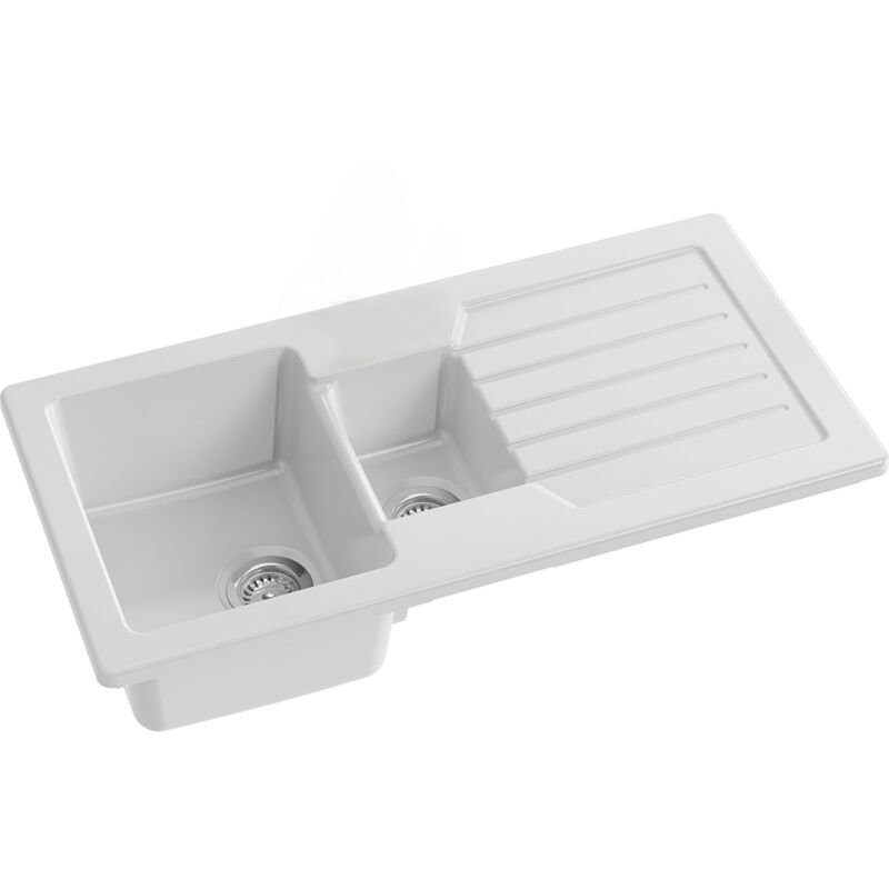 Pro Et Discount - Evier de cuisine à encaster 1 cuve et demi bac en résine minérale Blanc 98 x 50 cm
