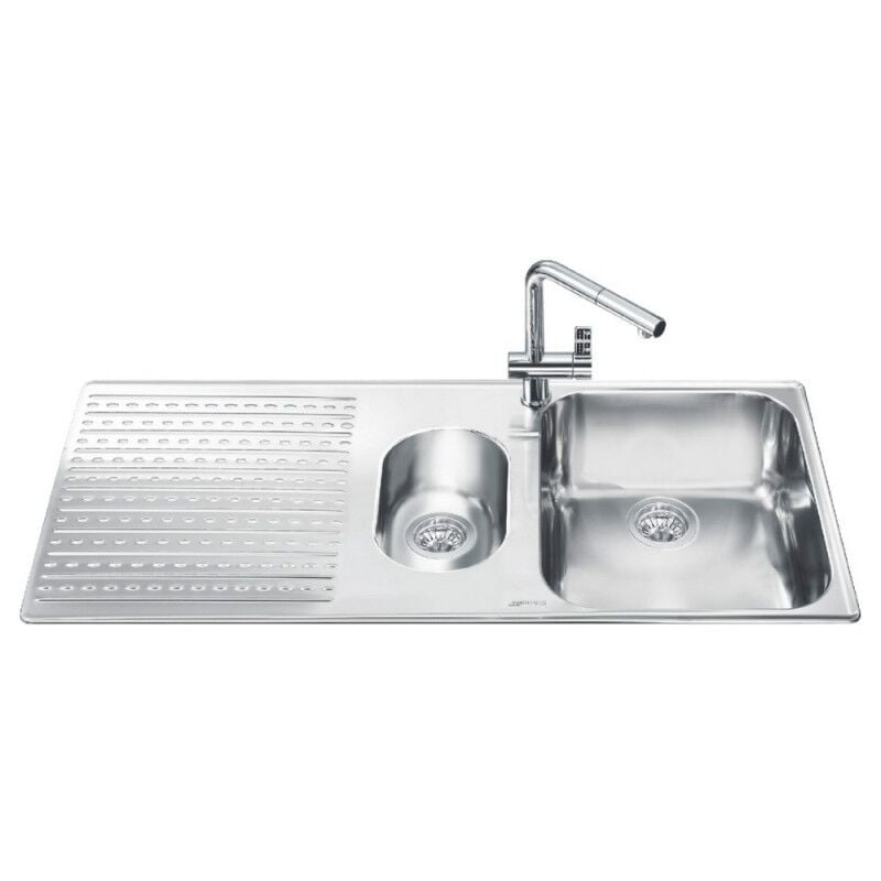 Smeg - Evier encastré 2 cuves et égouttoir à gauche 100x50 inox brossé LTS102S2