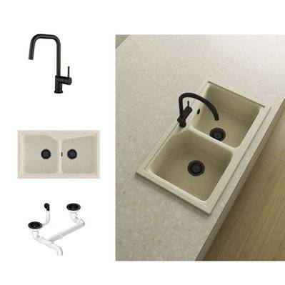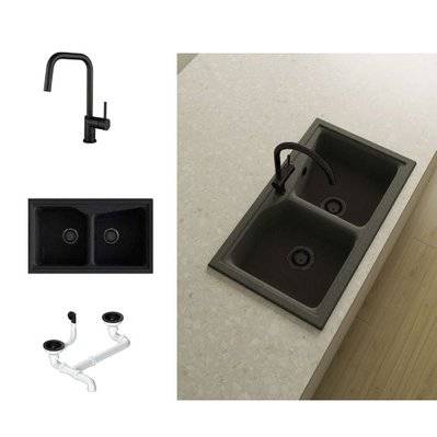 Poalgi Pack Evier 2 bacs POALGI City Pumice + mitigeur avec douchette bonde noire