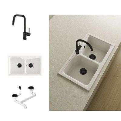 Poalgi Pack Evier 2 bacs POALGI City Snow + mitigeur avec douchette bonde noire