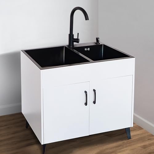 WIQUYBML Évier de Cuisine extérieur sur Pied Blanc/Noir avec Meuble, en Acier Inoxydable, idéal pour la buanderie Commerciale et la Salle de Bain à Domicile - Couleur Noire