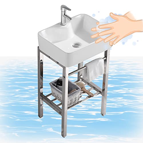 guoyjmm Évier Utilitaire Autonome en Céramique, Évier de Buanderie, Ensemble de Meuble-lavabo de Salle de Bain à évier Simple Moderne, avec Robinet et Accessoires, Étagère en Acier Inoxy,71×48×83cm