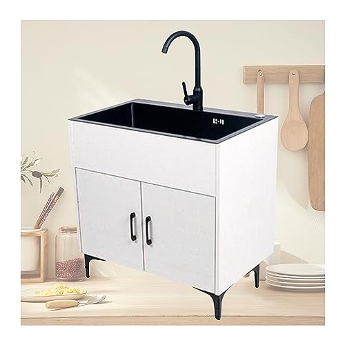 WIQUYBML Évier de Cuisine extérieur sur Pied Blanc/Noir avec Meuble, en Acier Inoxydable, pour la buanderie et la Salle de Bain (Couleur : Noir, Taille : réglable)