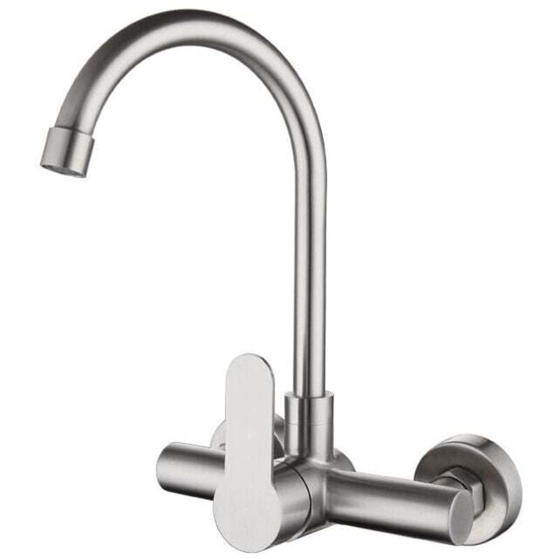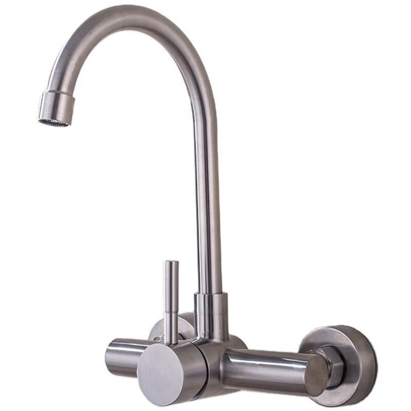 Robinet Cuisine Mural Acier Inoxydable 304 Évier Lavabo Balcon Buanderie Eau Chaude Froide Rotatif Argent
