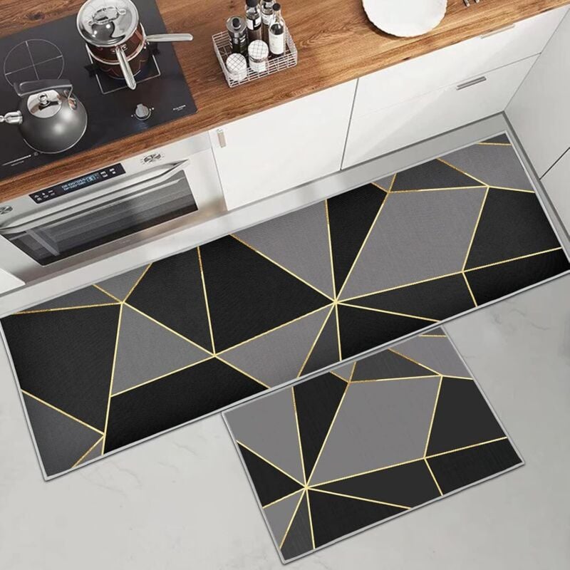 Hixingo Tapis de cuisine antidérapant, lavable, absorbant en forme de L, séchage rapide, pour salle de bain, buanderie, évier (120 x 45 cm, géométrique)