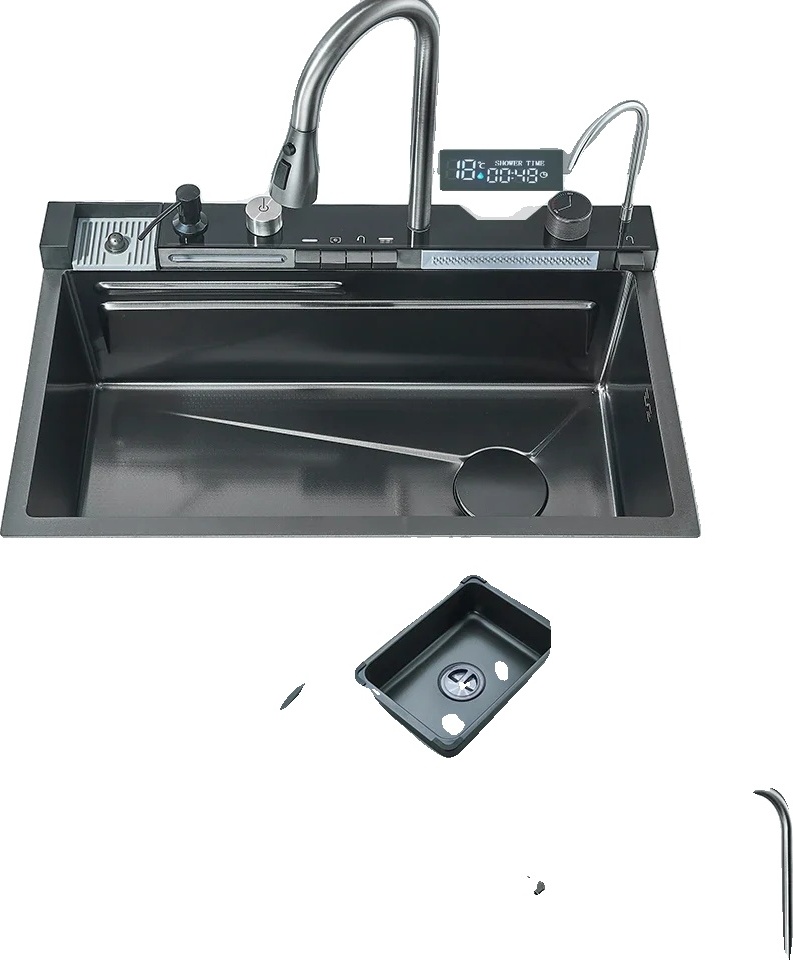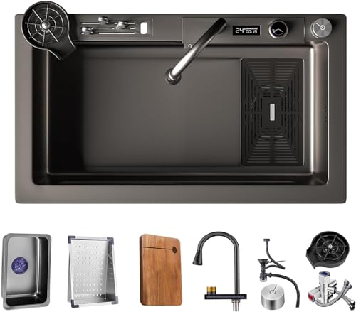 Évier de Cuisine Cascade Evier multifonction de Cuisine en Acier Inoxydable Noir Gris Affichage numérique Grand évier 75x46CM
