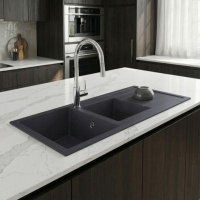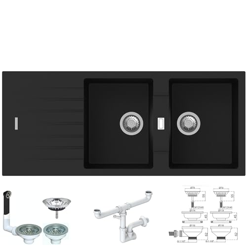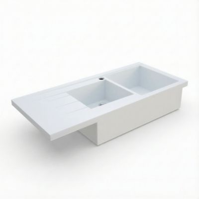 Evier 2 bacs WINDSOR PLUS - Dimensions : 120x 60 cm - En céramique - Blanc brillant - Avec égouttoir