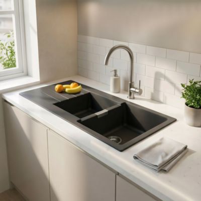 Évier céramique 2 bacs