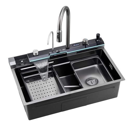 WFCTG Evier De Cuisine Multifonction 75 * 45 Cm, Evier Cuisine Moderne en Acier Inoxydable Évier Cuisine en Cascade, avec Composant De Drainage, Planche À Découper, Evier Cuisine 1 Bac avec Egouttoir