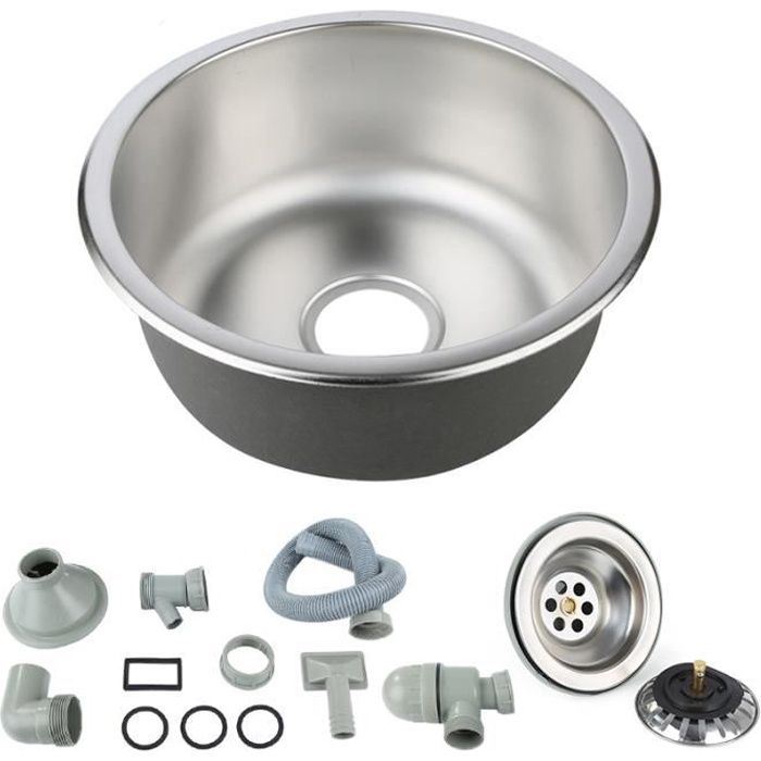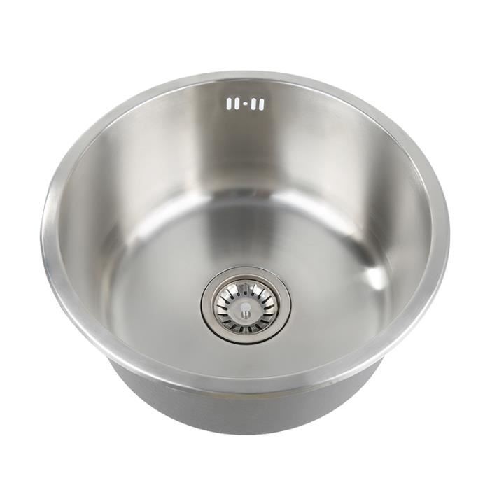 Evier de cuisine - Auge à Eau rond Inox avec égouttoir vidage - Métal - Gris - 1 bac - A poser - Réversible