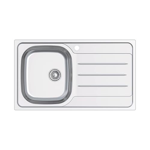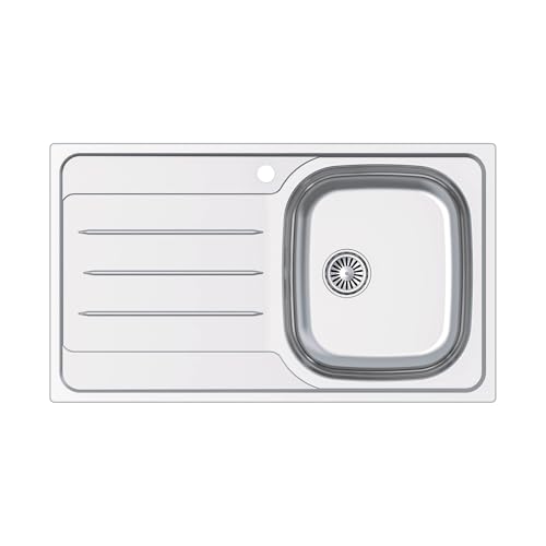 Edesa Évier de cuisine avec égouttoir gauche 1 bac VELETA SE 86 x 50 cm sur plan de travail Profondeur 18 cm Base Fond Absorbant Accessoires inclus Couleur Gris Acier inoxydable