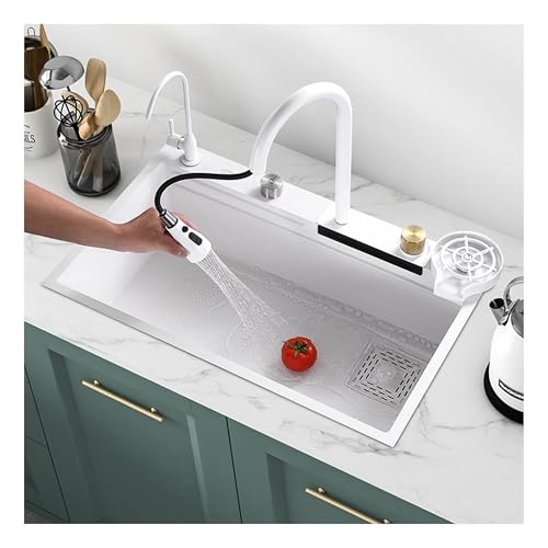 Évier de Cuisine Cascade Multifonction blanc en acier inoxydable Evier de cuisine Affichage numérique Grand évier simple