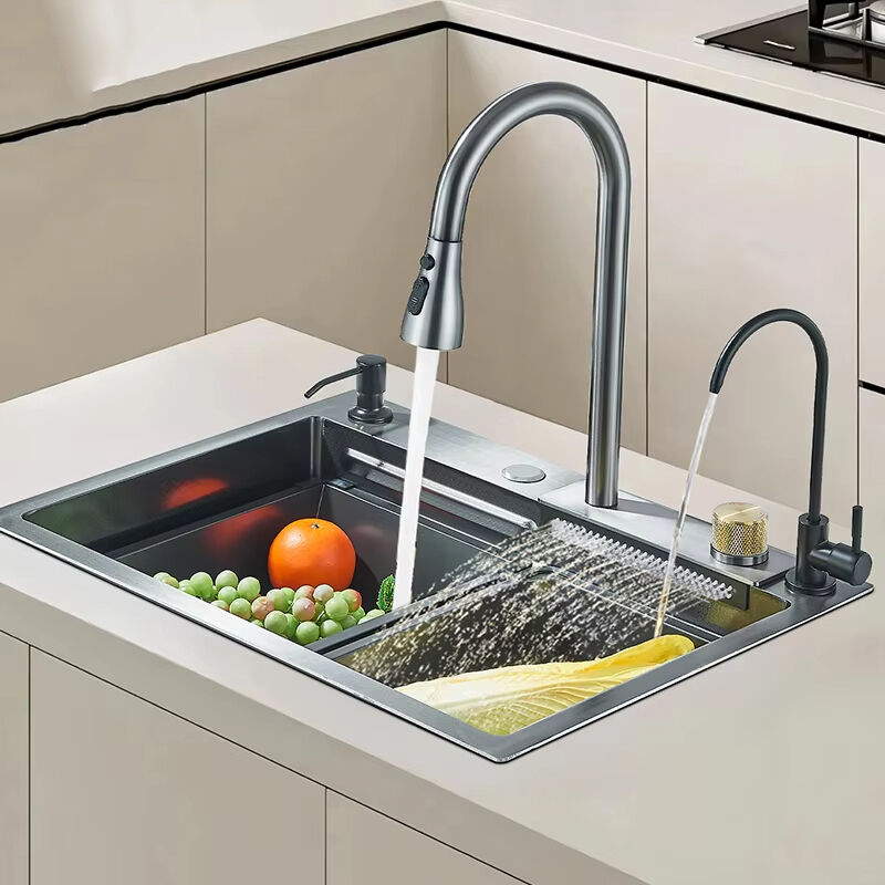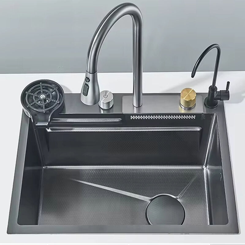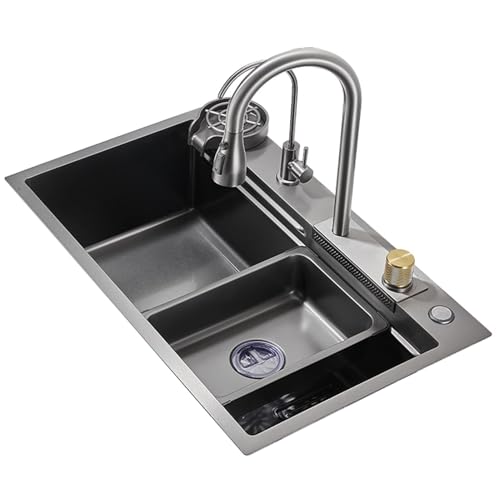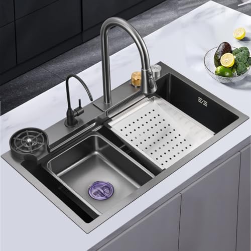 Évier de Cuisine Cascade, Evier multifonction de Cuisine en Acier Inoxydable, Noir Gris Evier de cuisine noir Affichage numérique Grand évier simple