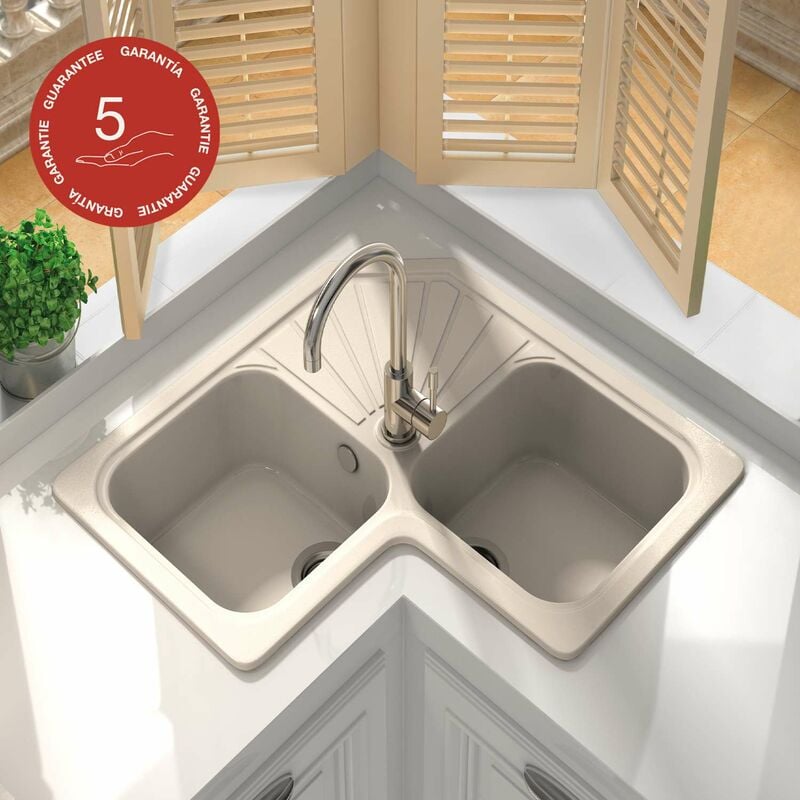 Evier pour meuble d'angle à encastrer Poalgi Agata Pergamon - 2 bacs avec égouttoir
