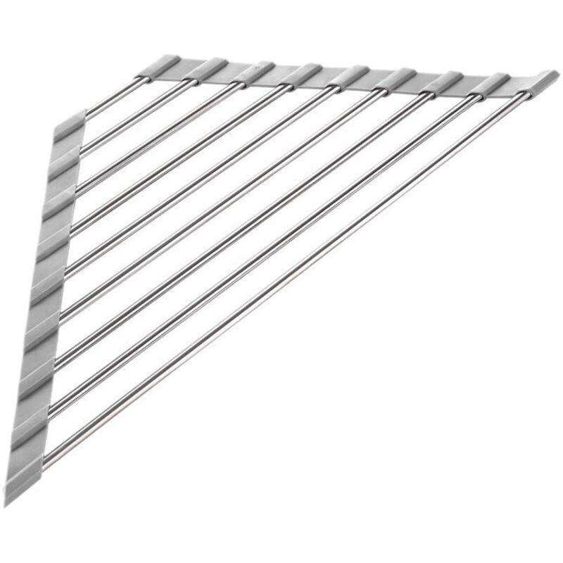 Tomorotec Égouttoir à vaisselle triangulaire enroulable pour évier d'angle - Petit format pliable en acier inoxydable - Multifonctionnel - Organiseur de rangement pour économiser de l'espace - Support