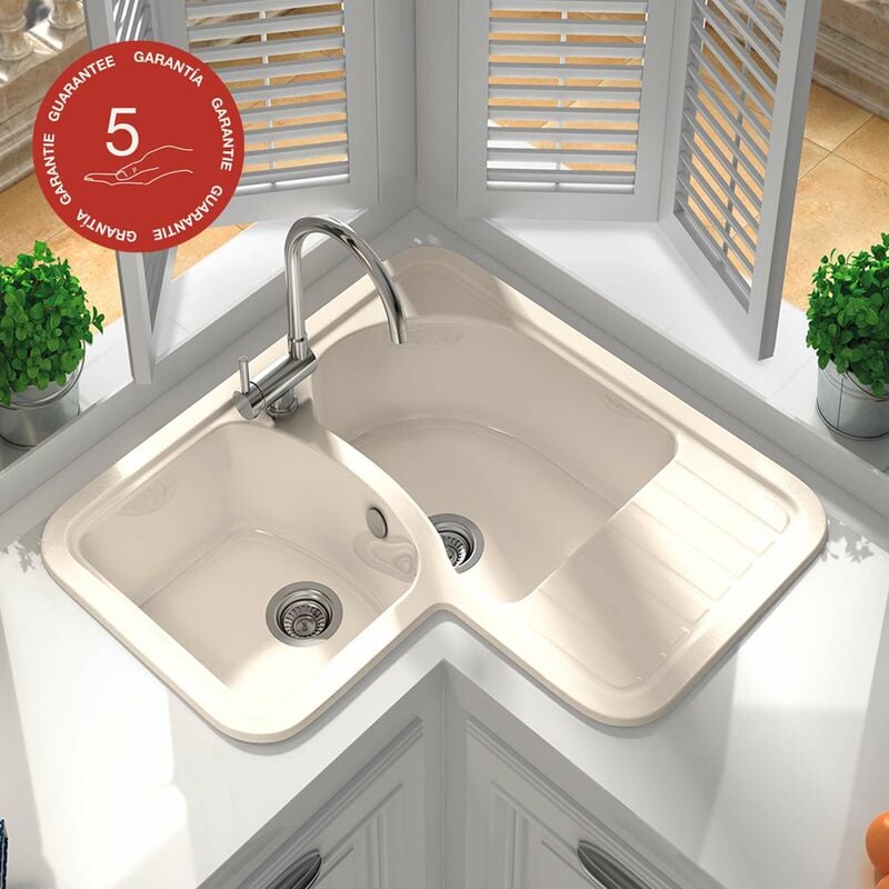 Evier d'angle granit blanc Kümbad VOZ 2 bacs