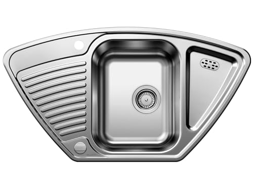 BLANCO TIPO 9 E | Acier inoxydable | Type de montage : montage par le haut | Bac principal au milieu | Pour armoires inférieures de 60 cm de large | Résistant aux rayures | Évier d'angle