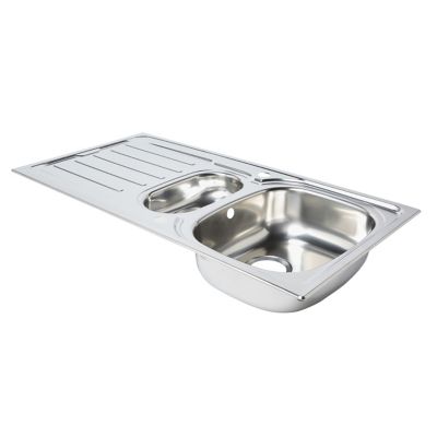 Respekta Évier en inox Riverside/Évier-encastré 1 bac 86 x 50 cm/en inox avec égouttoir adapté aux meubles bas à partir de 50 cm de largeur