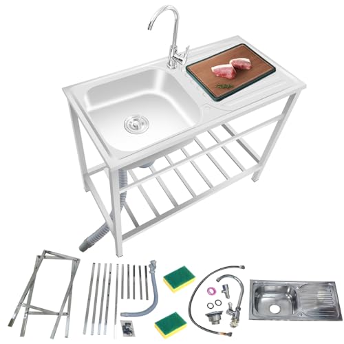 YHQYCGS Évier De Cuisine,Evier Cuisine 1 Bac,Évier De Cuisine D'extérieur,Evier De Cuisine Autoportant en Acier INOX 1 Bac,avec Raccords de Vidange et Robinet,for Cuisine, Restaurant.(Single Layer)