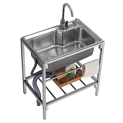 EMENAR Évier Utilitaire en Acier Inoxydable, Évier De Jardin Extérieur, Évier Commercial Autoportant Anti-débordement avec Robinet, Évier Simple pour Cuisine, Buanderie, Garage (Color : Cold, Size :
