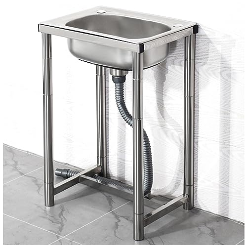 Professionnel Extérieur Évier De Jardin,Évier Inox De Cuisine 1 Bac Évier Sur Pieds En Acier Inox Anti-Eclaboussures Lavabo Pour Faire La Plonge Cuisine De Restaurants, Salle De Bain-0.8mm||50*50*80cm