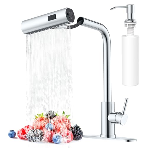 AVSIILE Robinet de cuisine avec pulvérisateur extractible, robinet d'évier de cuisine en acier inoxydable chromé à un trou, robinet d'évier de cuisine moderne et commercial à poignée unique pour