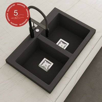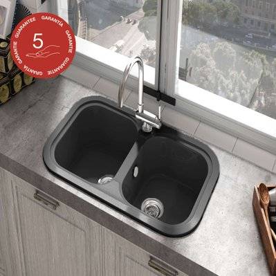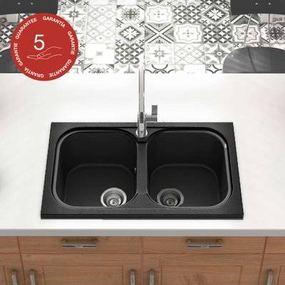 Evier noir 2 bacs