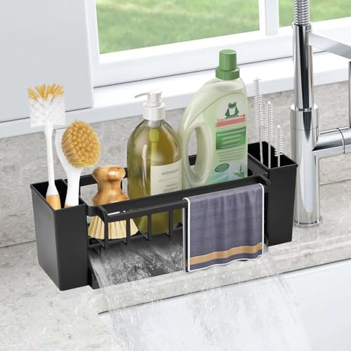 XRPRPX Organisateur Evier Cuisine ABS Porte Éponge Évier Cuisine avec Trous de Drainage Organiseur d'Évier en Plastique Noir Organisateur Évier Antidérapant Porte-éponge pour Vaisselle, Brosse, Savon