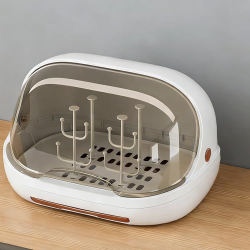 KLWQR Egouttoir Vaisselle sur Evier en Plastique, Egoutoire Vaisselle Cuisine de Comptoir avec 4 Supports, Gain de Place, Couvercle Rabattable à Grande Ouverture(White,30x23x21 cm/12x9x8 in)