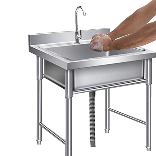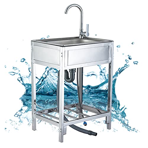 Jardin Évier utilitaire en acier inoxydable,Éviers de cuisine à cuve unique autoportants,Bassin de lavage extérieur,Évier à déchets pour garage, restaurant, cuisine, buanderie, intérieur extérieur(Sin