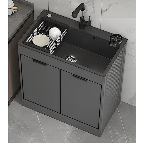 Duchunsheng Cuve Simple Mural Evier INOX Professionnel Evier Jardin, Évier Extérieur Et Intérieur, Plonge INOX pour Cuisine Restaurant Garage Jardin, Équipé d'un Lavabo Et d'un Meuble De Rangement