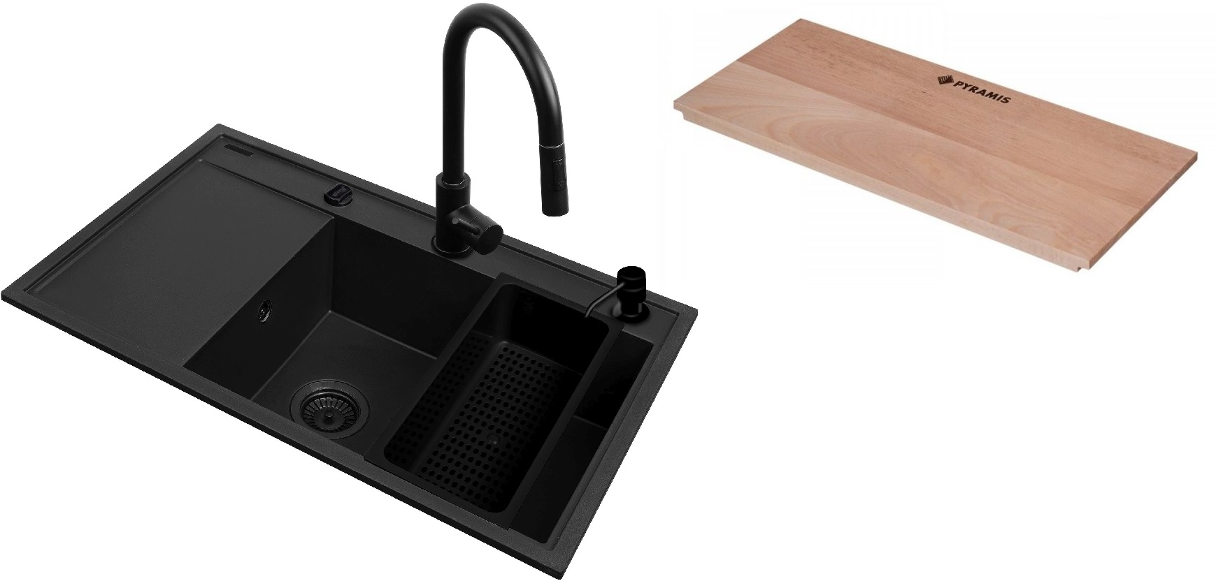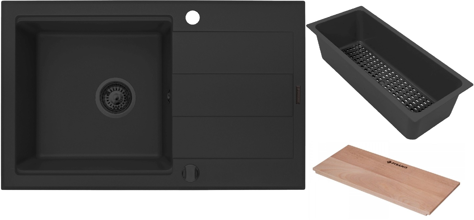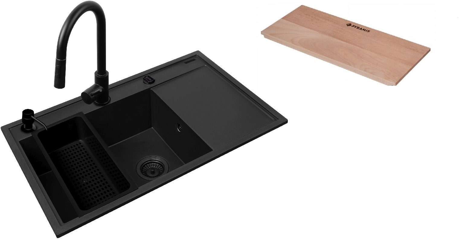 Set évier en granit Pyramis Sparta Plus 070175802, insert d'égouttage Pyramis Camea 521019601, 525009601
