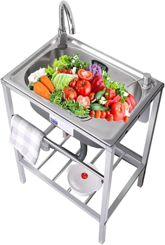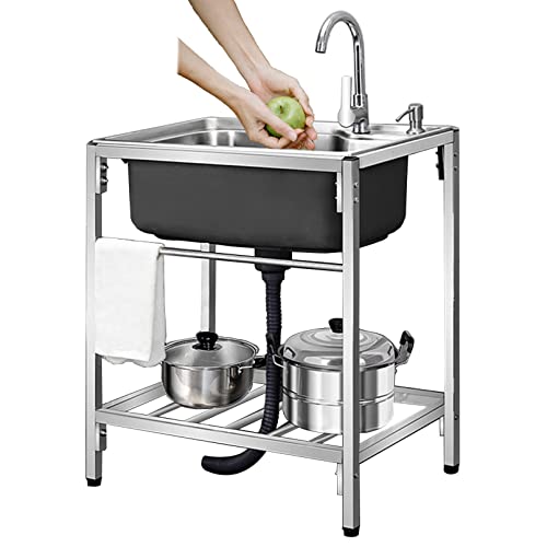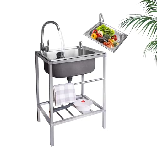 TTDGYYXW Évier de Restauration à cuve Unique en Acier Inoxydable avec Robinet, évier Utilitaire sur Pied pour Cuisine Commerciale, Salle de Bain intérieure extérieure, Bar de, Poste de Travail (68 x