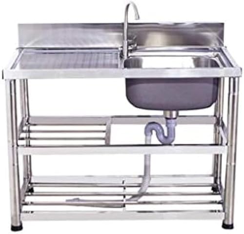 EMISOO Évier De Restaurant Indépendant Évier Cuisine avec Plate-Forme D'exploitation, Evier sur Pied À Une Cuve, Évier en Acier INOX 1 Compartiment, pour Buanderie/arrière-Cour/Garage (Color : Single