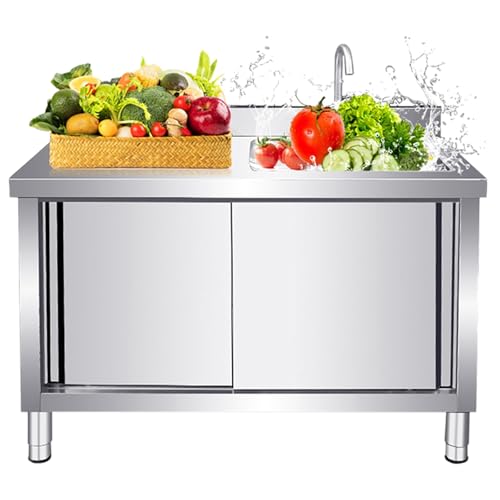 Évier de cuisine sur pied avec armoire inférieure, design à compartiment unique pour une utilisation efficace dans les restaurants et les maisons