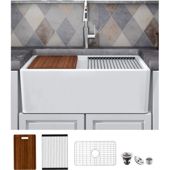 MEJE 765x455cm Évier de cuisine de type Farmhouse Évier timbreÉvier à tablier Évier réversible à une cuve pour cuisines