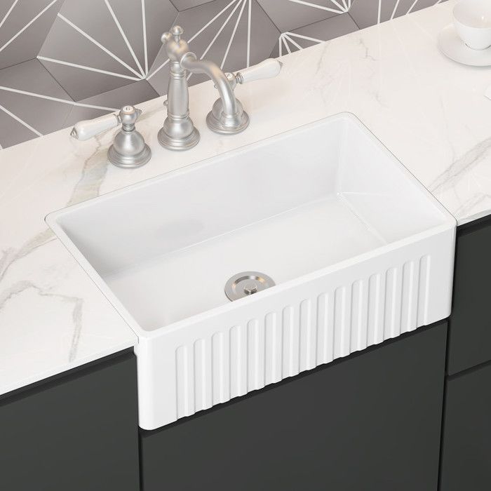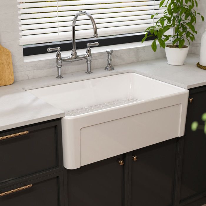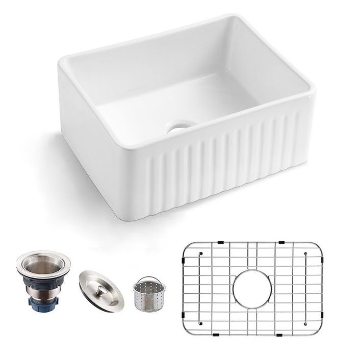 MEJE Évier de cuisine Farmhouse en céramique 605 x 455cm - Évier timbre - petit évier à tablier avec crépine et grilles de fond